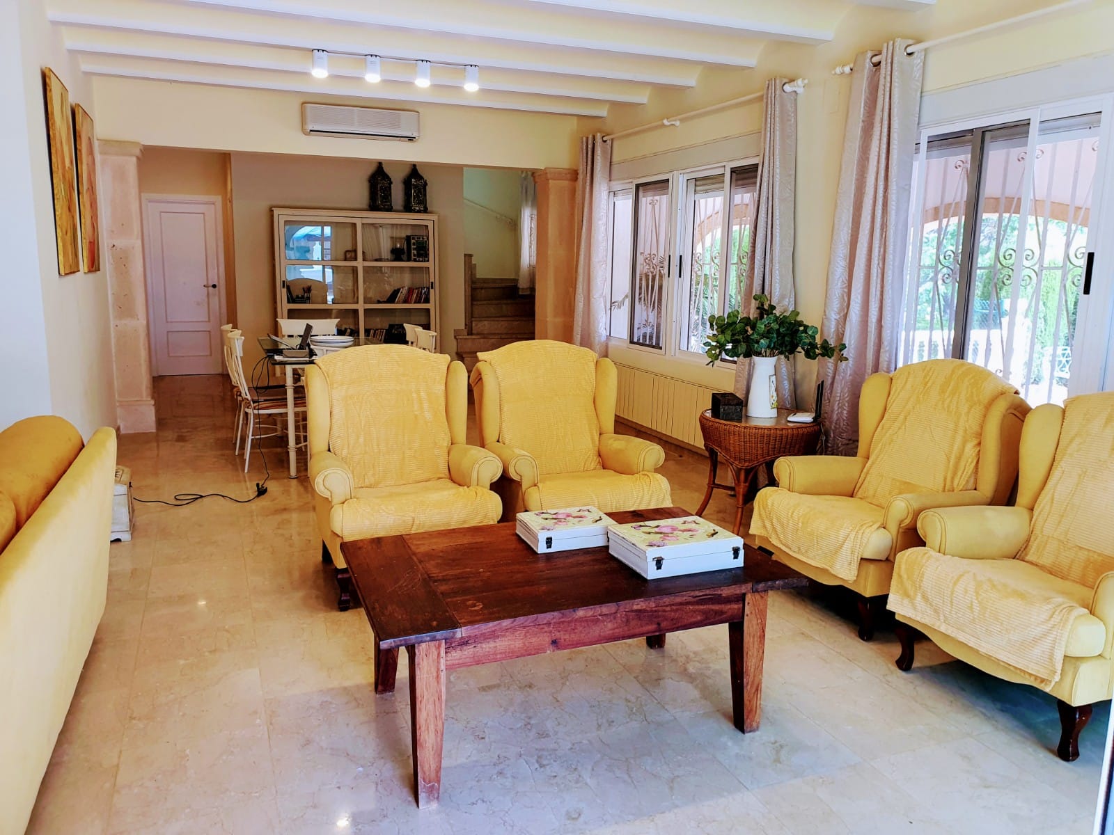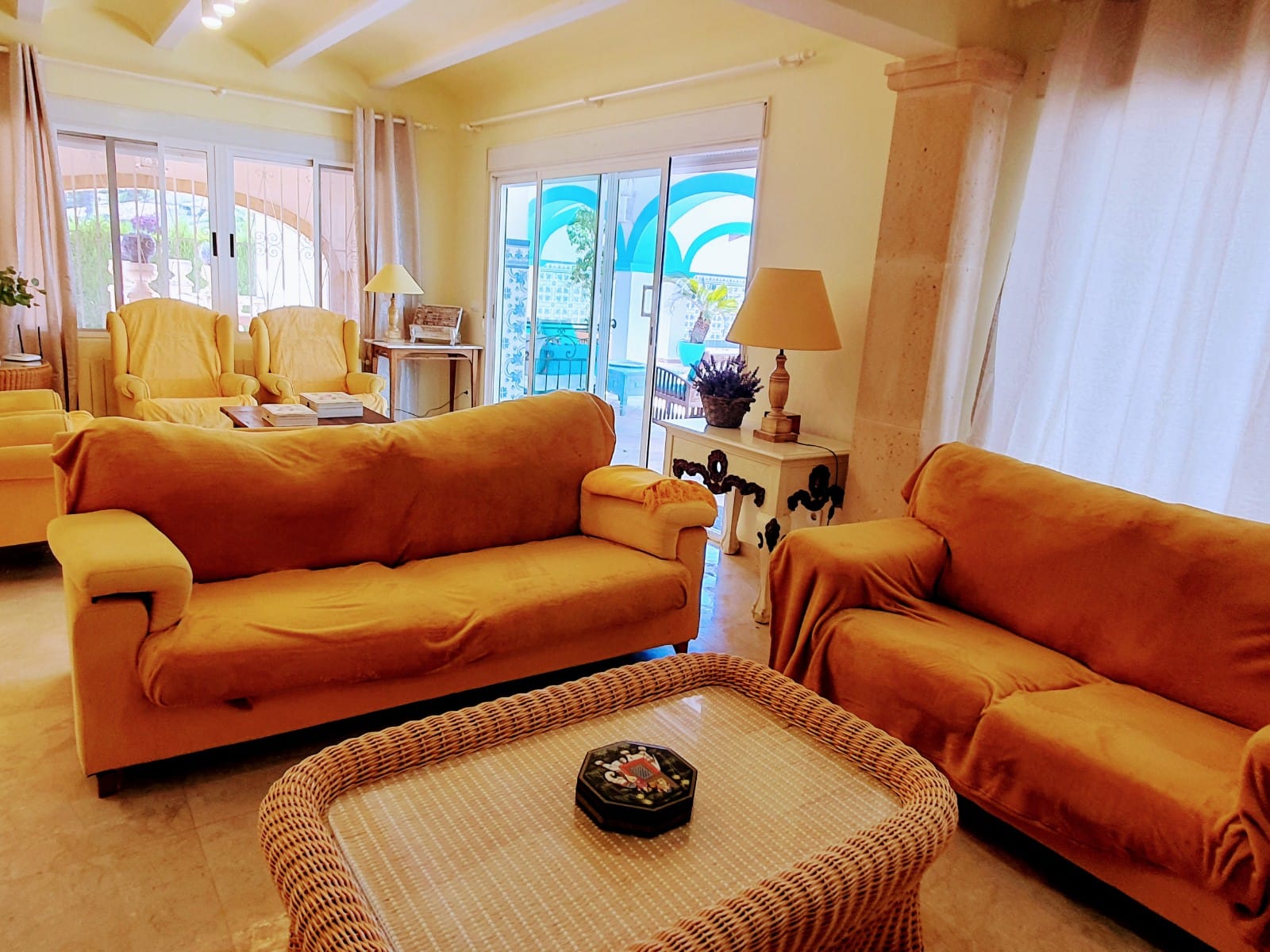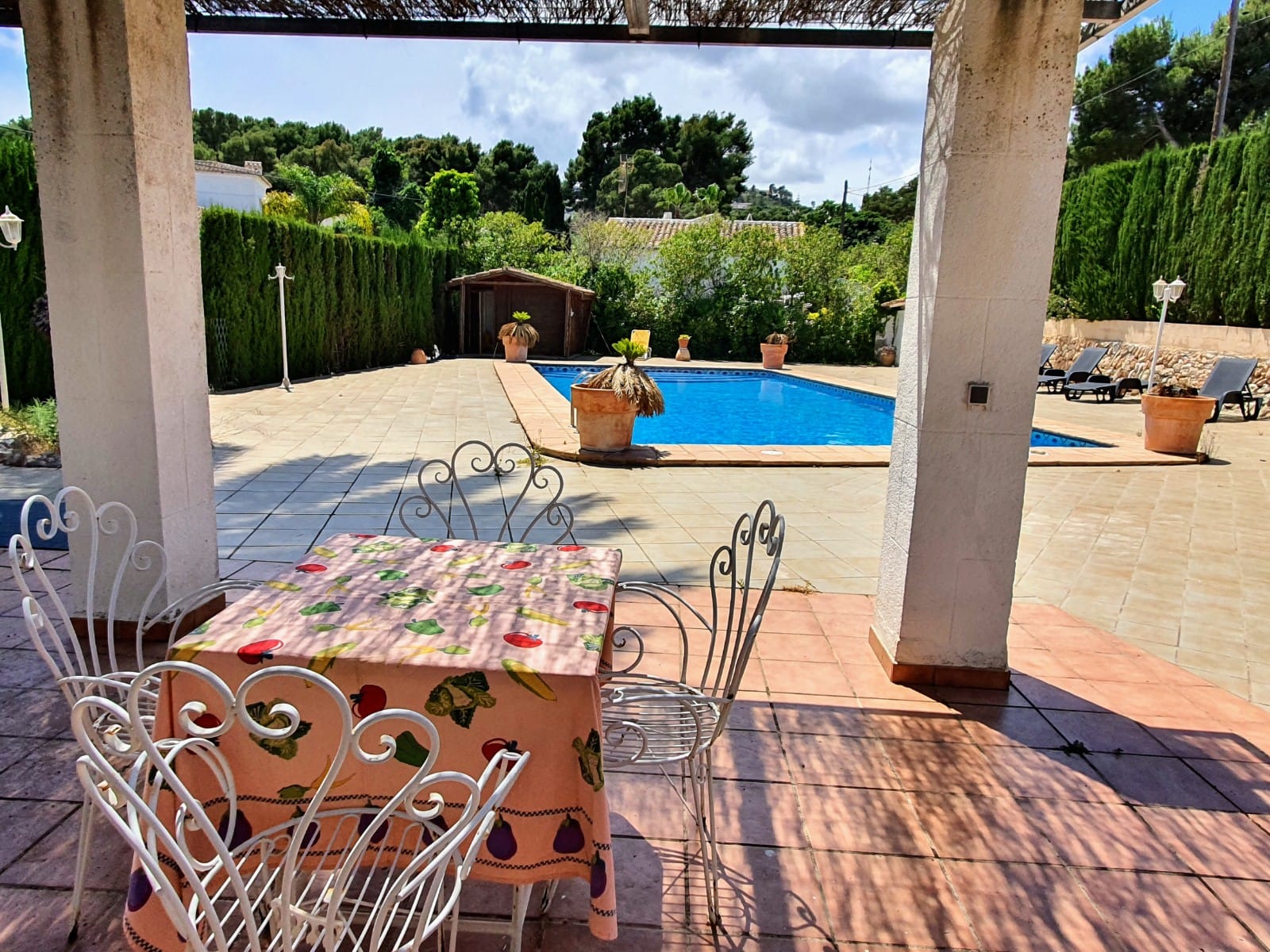 Grande villa traditionnelle de 268 m2 de construction, plus un appartement d’hôtes de 32 m2, sur une parcelle de 1 305 m2, située sur la zone très recherchée de Tosalet à Javea. La maison principale se compose d’un salon spacieux et salle à manger avec cheminée, une grande cuisine entièrement équipée avec salle à manger, 5 chambres, 2 salles de bains et une toilette pour les clients. Il ya aussi un loft de 148 m2, un grand patio intérieur de 250 m2 et un autre patio plus petit pour les repas d’été. L’appartement indépendant se compose d’une chambre à coucher (actuellement utilisée comme salle de billard) et d’une salle de bains. A l’extérieur se trouve la grande piscine de 72 m2 avec une grande terrasse environnante et le beau jardin. Il y a également 2 entrepôts, une buanderie et un immense garage de 250 m2.