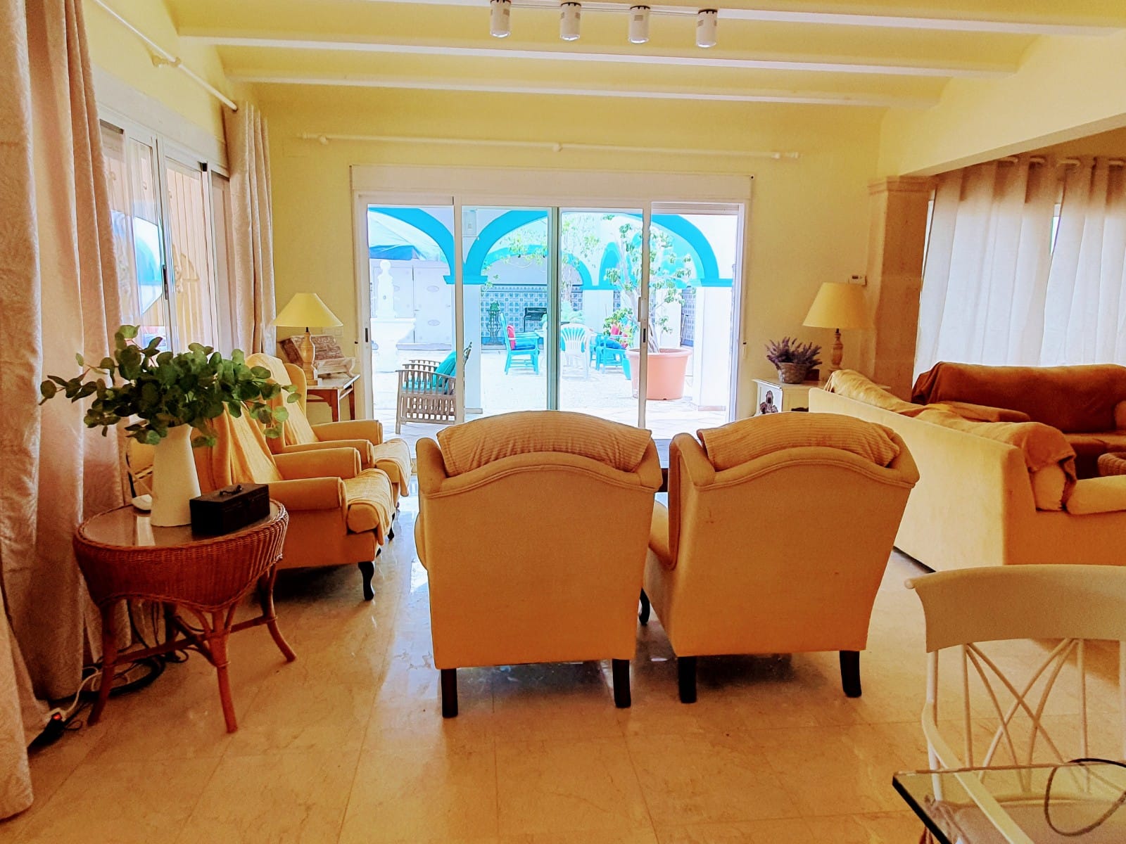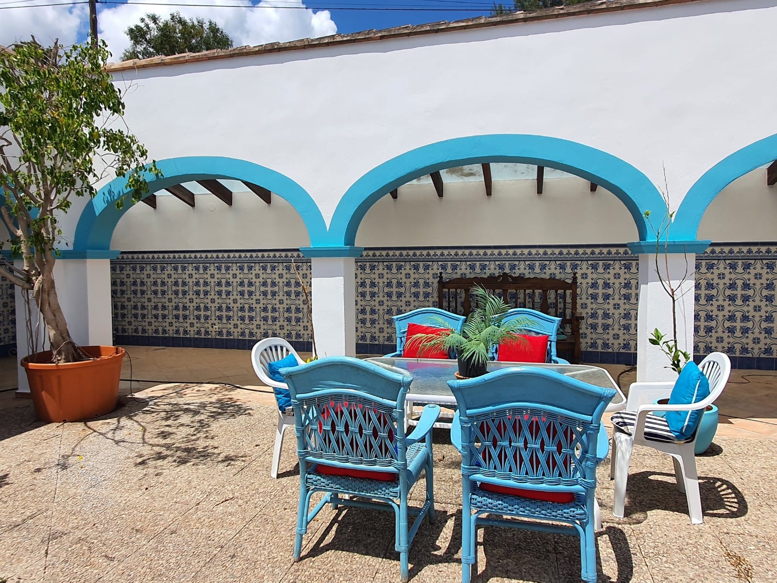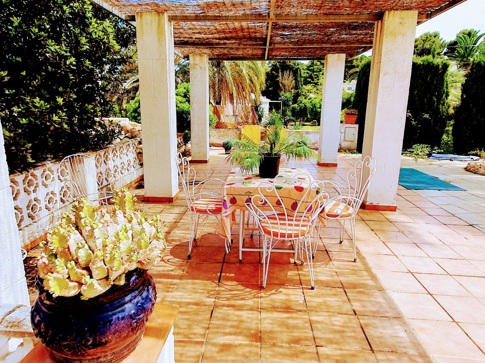 Grande villa traditionnelle de 268 m2 de construction, plus un appartement d’hôtes de 32 m2, sur une parcelle de 1 305 m2, située sur la zone très recherchée de Tosalet à Javea. La maison principale se compose d’un salon spacieux et salle à manger avec cheminée, une grande cuisine entièrement équipée avec salle à manger, 5 chambres, 2 salles de bains et une toilette pour les clients. Il ya aussi un loft de 148 m2, un grand patio intérieur de 250 m2 et un autre patio plus petit pour les repas d’été. L’appartement indépendant se compose d’une chambre à coucher (actuellement utilisée comme salle de billard) et d’une salle de bains. A l’extérieur se trouve la grande piscine de 72 m2 avec une grande terrasse environnante et le beau jardin. Il y a également 2 entrepôts, une buanderie et un immense garage de 250 m2.